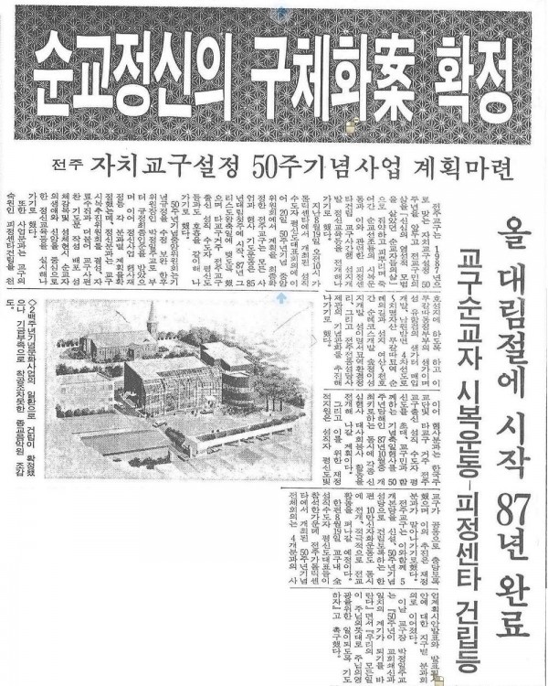 이전글 다음글 목록 SNS 공유하기 1985년 09월 01일자 전주 자치교구 설정 50주년 기념사업 계획 마련 페이지 정보 작성일2009-07-10 조회 2,526회 본문 * 이미지를 클릭하시면 크게 보실 수 있습니다.