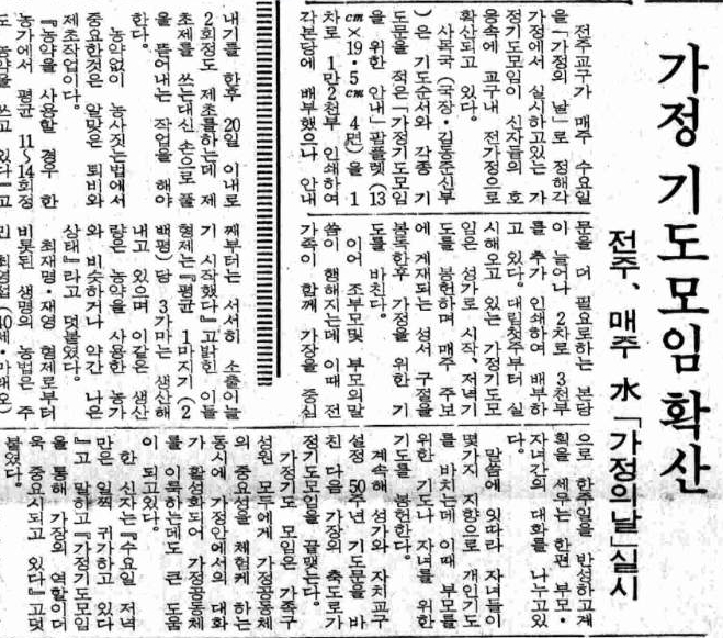 1986년 01월 26일자 제1490호 7면 전주교구 매주 수요일 가정의 날 실시
