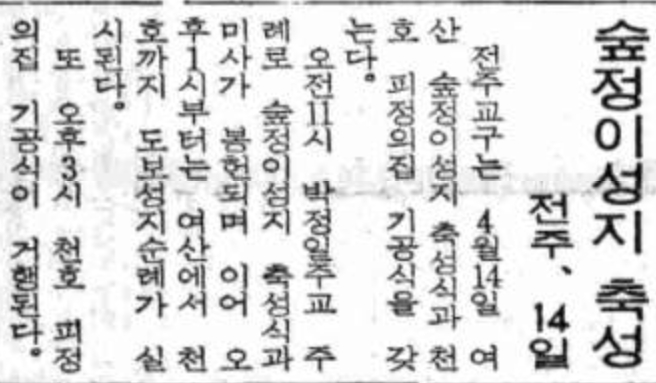 1986년 04월 13일자 제1501호 7면 전주 숲정이성지 축성