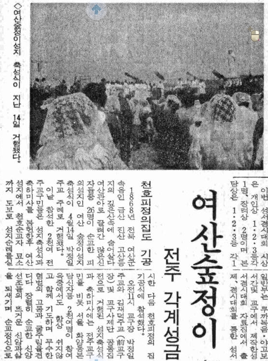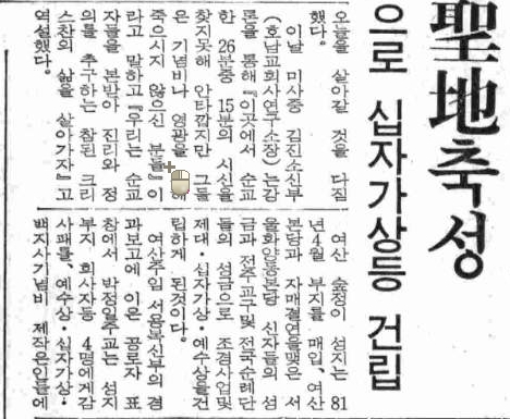 1986년 04월 20일자 제1502호 7면 여산 숲정이 성지 축성