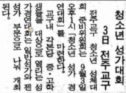 1989년 09월 03일자 제1670호 2면 전주교구 청소년 성가대회
