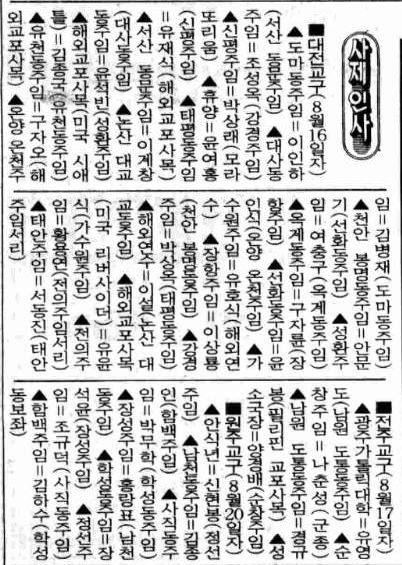 1990년 08월 26일자 제1718호 1면 사제인사