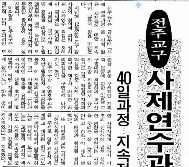 1991년 02월 17일 제1742호 1면 전주교구 사제연수과정신설