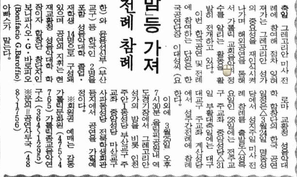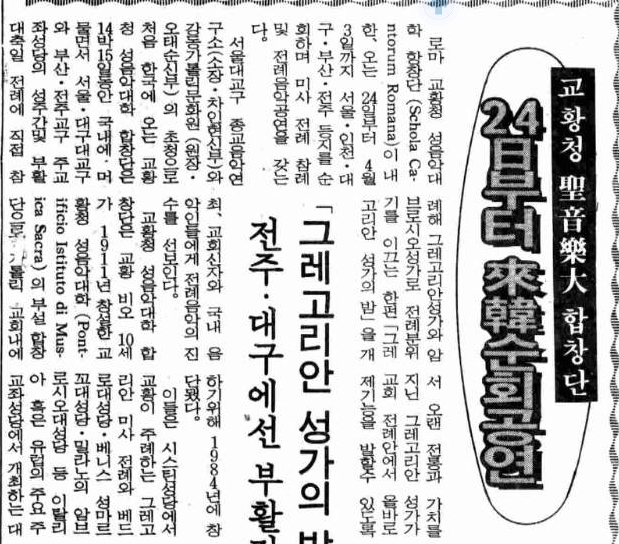 1991년 03월 03일 제1744호 2면 교황성 성음악대 합창단 내한 순회공연