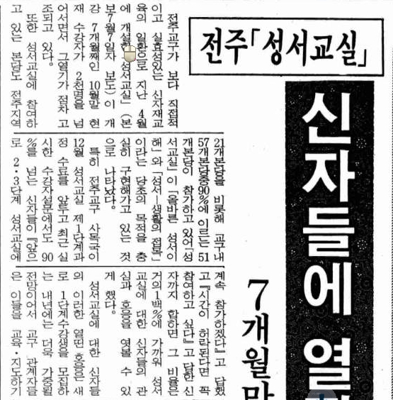 1991년 11월 10일자 제1779호 11면 전주 성서교실 신자들에 열띤호응