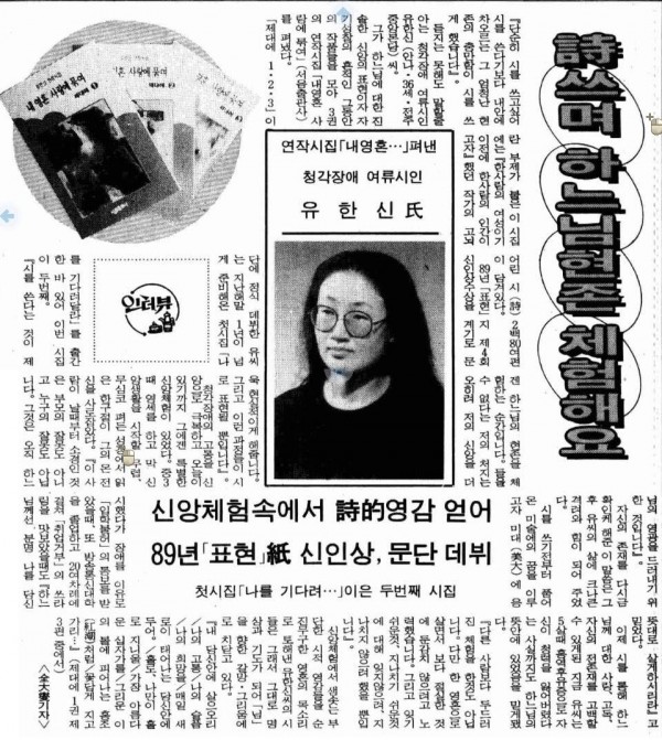 이전글 다음글 목록 SNS 공유하기 1991년 11월 17일자 제1780호 12면 청각장애 여류시인 유한신씨 페이지 정보 작성일2009-07-13 조회 2,766회 본문 * 이미지를 클릭하시면 크게 보실 수 있습니다.