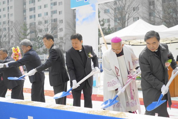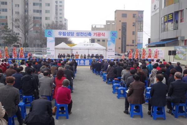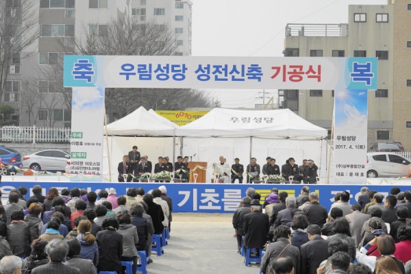 4월 1일(토) 오전 10시 30분에 우림성당(주임=김희태 신부) 성전 신축 기공식을 이병호 주교의 주례로 거행했다. 우림 성당은 2002년 1월 26일 상가 건물 4층, 5층에서 첫 미사를 봉헌했다. 그후 3개 식당이 있던 현 부지를 구입, 성전으로 리모델링 후, 2009년 11월 18일 미사를 봉헌했다. 새 성전 기공식에는 김영수 총대리 신부, 본당을 거쳐간 역대 사제들과 본당신자들이 참석했다. 이병호 주교는 “우림 성당은 15년 동안 여러 과정을 거쳐 기공식을 하는데 감회가 깊다. 성당을 짓는 이유는 세상에 빛과 소금이 되기 위한 것이다. 부활하신 그분을 믿는 우리 각자는 끝까지 하느님이 주신 기쁨과 보람으로 이 집을 짓자.”고 했다. 성전 건립 추진 경과보고를 시작으로 주교님의 격려사, 성전 대지 축성, 테입 커팅식, 시삽회, 축하 떡케익 커팅식 순서로 진행되었다.