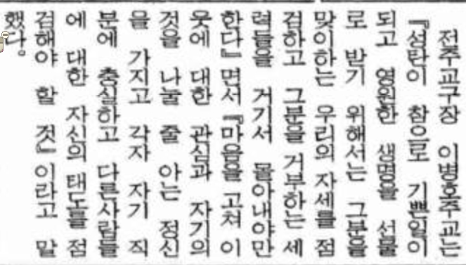 1991년 12월 22일자 제1784호 1면 교구장 성탄 메세지