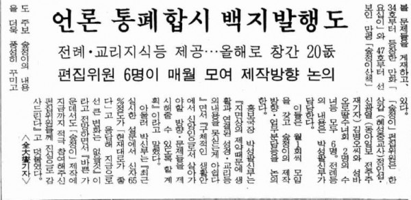 이전글 다음글 목록 SNS 공유하기 1992년 01월 12일 제1787호 10면 언론 통폐합시 백지 발행 페이지 정보 작성일2009-07-13 조회 2,830회 본문 * 이미지를 클릭하시면 크게 보실 수 있습니다.