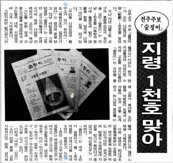 이전글 다음글 목록 SNS 공유하기 1992년 01월 12일 제1787호 10면 전주주보 숲정이 지령 1천호 맞아 페이지 정보 작성일2009-07-13 조회 2,951회 본문 * 이미지를 클릭하시면 크게 보실 수 있습니다.