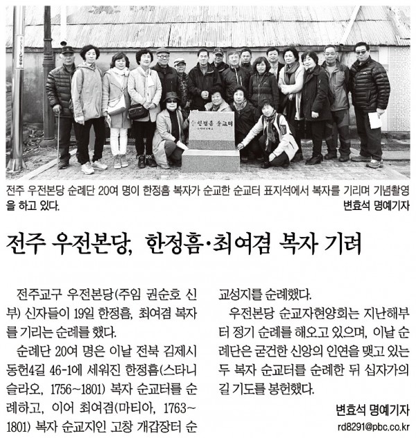 이전글 다음글 목록 SNS 공유하기 전주 우전본당 한정흠 최여겸 복자 기려[평화신문 2016-03-27] 페이지 정보 작성일2016-07-13 조회 3,955회 본문 * 이미지를 클릭하시면 크게 보실 수 있습니다.