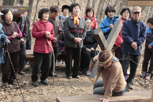 이전글 다음글 목록 SNS 공유하기 고산 성당 십자가 고난 체험_홍보국 정리 페이지 정보 작성일2013-03-25 조회 2,944회 본문 고산 성당(주임=백승운 신부)에서는 3월 17일(주일), 백석 공소에서 되재 공소로 넘어가는 고개에 있던 십자가의 길을 복원했다. 박해 받을 당시부터 선조들이 이용했던 이 길에서 신자들은 3월 24일(주일) 주님 수난 성지 주일을 맞이하여 예수님의 십자가 고난을 체험하는 시간을 가졌다.