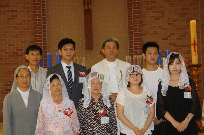 둔율동성당(주임=정천봉 신부)에서는 지난 15일(성모승천대축일) 미사중에 세례식을 거행했다.. 이날 세례식은 지난 2월부터 교리를 수강해온 형제자매들이 약7개월간의 교리를 받고 주님의 자녀로 태어나 둔율공동체의 한가족이 되는 기쁨을 누렸다. 이날 세례식을 거행한 정신부는 “둔율동 공동체의 일원으로서 서로에게 기도와 용기를 북돋아 주고 모두가 어렴고 힘든 이 시대에 하느님의 자녀로서 부끄럽지 않게 살아갈 것을 당부”하고, 새 세례자들의 가정에 하느님의 은총과 축복을 빌었다. 세례식후에는 이판근 선교부장의 소개로 세례자들의 인사소개가 있었다. 이어서 환영식은 교육관1층에서 있었고 이날 세례자들의 대표로 인사에서 박순민(라이문도)형제는 인사말을 통해 “하느님의 자녀로 태어날 수 있도록 이끌어 주시고 기도해 주신 본당의 형제 자매들께 감사드리며 주일미사를 궐하지 않고 하느님의 자녀로써 열심히 주님만을 바라보며 신앙생활의 하겠다”는 포부를 밝혔다. 참석한 신자들은 새신자들이 신앙생활을 잘 할수 있도록 기도와 격려를 아끼지 않았다.