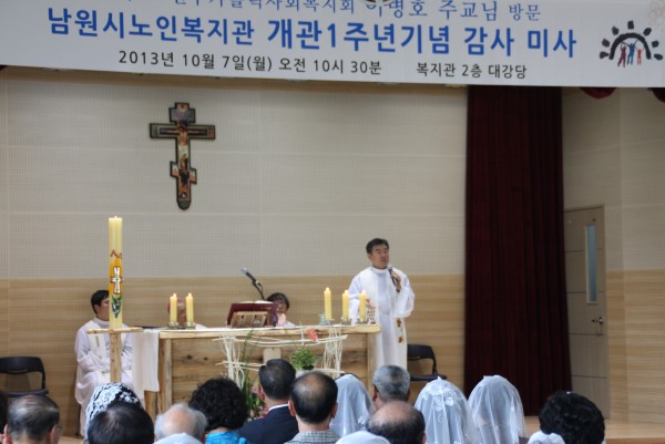 남원시 노인복지관(관장=김봉술 신부)에서 지난 10월 7일(월) 10시 30분 이병호 주교 주례로 직원과 신자 200여 명이 참례한 가운데 개관 1주년 감사 미사를 봉헌했다.