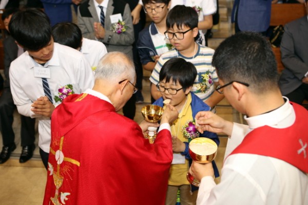 1부 주보축일미사를 이병호 주교 주례로 봉헌하고 미사중 중학생 70명과 교사 3명, 고등학생 28명, 교생 1명이 견진성사의 은사를 받았다.