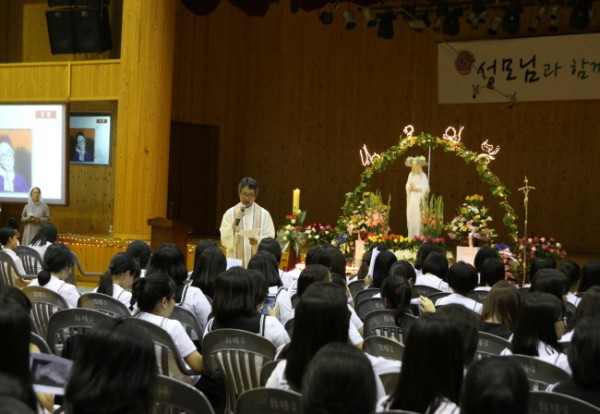 전주 성심여중?고(종교감=이득재 신부)는 지난 5월 29일(목) 강당에서 ‘2014 성모님과 함께하는 평화의 기도’를 주제로 성모의 밤 행사를 가졌다.