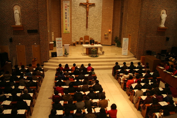 교구 사목국(국장=김광태 신부)은 11월 24일(월) 서신동 성당에서 성서 사도직 활성화를 위한 ‘말씀과 음악피정’을 실시했다. 성서주간을 맞아 열린 이날 피정은 각 본당에서 성서 백 주간, 사십 주간, 거룩한 독서 등, 성서 사도직 프로그램에 참여하는 신자들이 대거 참여했다. 강사는 정태현 신부(효자동 주임, 성서학 박사)와 정범수 신부(성음악 전공)가 각각 말씀과 음악피정을 지도했다. 정태현 신부는 ‘초대교회, 하느님 나라의 대안 공동체’를 주제로 강의했다. 정신부는 “말씀과 친교, 빵 나눔(성찬)과 기도가 살아있던 초대교회는 하느님 나라의 대안 공동체로써 그 역할을 다하였다”며 “혼돈의 시대를 살아가는 우리가 그리스도인의 정체성을 회복하려면 초대교회로 돌아가야 한다.”고 강조했다. 이날 정범수신부는 기타연주와 함께 찬미의 시간을 가졌다. 또한 미사전례에서 성가의 중요성에 대해 언급하였다. 정신부는 “성가의 의미를 생각하며 온 마음과 정성을 다해 노래하면 미사가 천국으로 바뀐다.”며 “찬미를 통해 하느님의 거룩하심을 드러내는 신앙인이 되자”고 말했다. 이날 파견미사는 이병호 주교와 교구 사제단이 공동 집전하였다. 미사에 앞서 한복으로 단장한 성서 형제회 회원들이 성경 봉헌식을 가졌다. 이병호 주교는 강론에서 “생명의 말씀을 굳게 지니고 빛의 자녀로써 기쁘게 복음의 삶을 살아갈 것”을 권고했다.