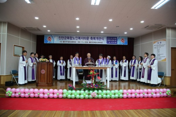 3월 30일(월) 교구장 이병호 주교 주례로 진안군 복합노인복지타운(관장=김봉술 신부) 축복 개관미사를 봉헌했다. 전주가톨릭사회복지회는 2015년 2월 16일 진안군과 위,수탁계약을 체결하고 2017년 12월 31일까지 3년간 복지타운을 운영하면서 노인요양원(2005년 개원)과 노인복지관(2008년 개관) 노인요양원 입소자 보호자들과 노인복지관을 이용하는 어르신들에게 더 나은 서비스를 제공할 계획이다.