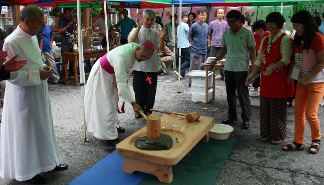 오후에는 풍물패의 길놀이와 함께 떡을 메치며 참석한 신자들과 음식 나눔으로 친교마당을 열었으며, 천연 모기약 및 천통 솟대 만들기 체험 행사 및 제기차기, 투호던지기, 우리농촌 살리기 운동 활동 홍보와 생명 농산물 직거래 장터를 펼쳤다.