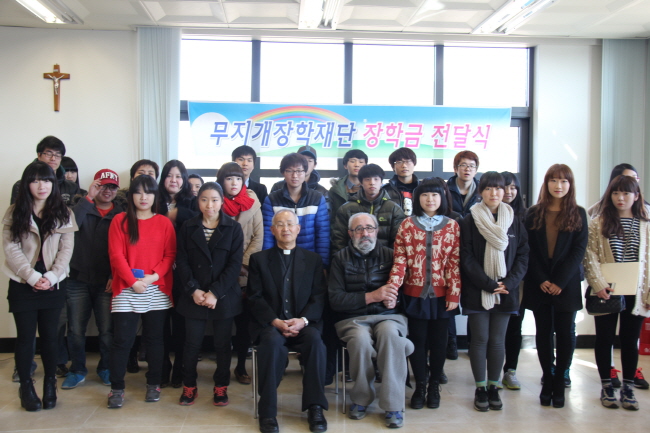 교구 무지개 장학재단(이사장=이병호 주교)은 지난 2월 23일(토) 오후 3시 교구청 4층에서 교구 사회사목국(국장=남종기 신부)주관으로 장학금 전달식을 개최했다. 이 날 전달금액은 대학생은 최고 200만원, 고등학생은 70만원으로 대학생 25명과 고등학생 5명에게 전달했다. 이사장 이병호 주교는 학생들에게 “삶에서 여러움을 겪을 때 자기 자신을 믿고 믿음을 굳게 지키면 나중에 돌이켜보면 어려운 일들이 삶이라는 아름다운 그림을 그려가는 과정이 될 것”이라고 당부했다.