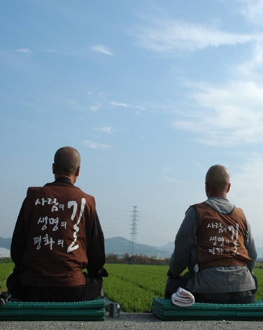 | 줄거리 이명박 정권이 들어선 뒤 사회적 약자들은 더욱 열악한 생존 환경에 놓이게 되고, 설상가상으로 민주주의는 후퇴한다. 2008년 봄, 국민의 의사를 무시하는 정부에 대해 저항하는 대규모 촛불 시위가 일어나지만 정부는 여전히 소통불능에 빠져 있다. 이런 때 문규현 신부와 수경스님, 전종훈신부가 오체투지에 나서게 된다. 지리산 하악단에서 계룡산 중악단, 묘향산 상악단을 목표로 시작한 긴 고행… 이들은 왜 순례길에 나섰나? 환경문제일까? 아니면 정치적 항의일까? 그도 저도 아닌 종교적 이유일까? 순례를 끝까지 이어나갈 수 있을까? 이들의 오체투지 순례를 두고 해석이 분분하다. 그러나 순례길에서 나타나는 행동과 간간이 드러나는 발언을 통해 순례 목적을 짐작할 수 있을 뿐 정작 이들은 말을 아낀다. 이들은 순례길에서 만나는 사람들과 소통하며 조금씩 앞으로 나아가는데…. | |