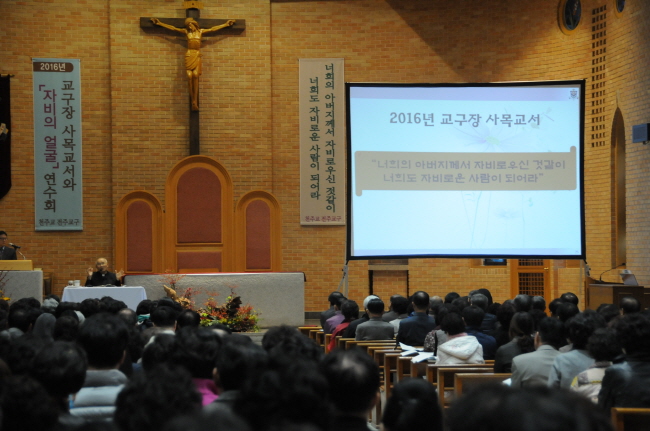 이전글 다음글 목록 SNS 공유하기 2010년대 | 2016년도 교구장 사목교서 연수 및 자비의 얼굴 연수회 페이지 정보 작성일2015-11-18 본문 일시 : 2015년 11월 18일(수) 오후 1시 30분장소 : 중앙 성당취재 : 교구 홍보국 이전글 다음글 목록
