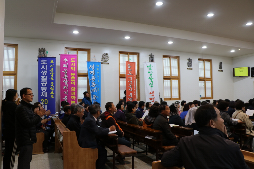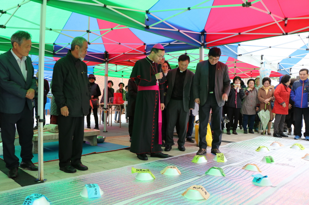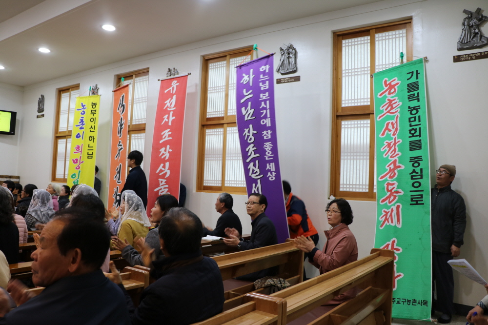 4월 14일(토) 용진 성당(주임=이영춘 신부)에서는 전주교구 농촌·환경사목위원회와 가톨릭 농민회 우리농촌살리기운동 본부의 주관으로 도시와 농촌이 함께 하는 ‘풍년기원미사 및 영농발대식’이 열렸다. 이번 행사는 교구장 김선태 주교의 주례로 풍년기원 미사가 봉헌되고, 영농발대식과 나눔 잔치, 어울림 한마당 순서로 진행되었다. 김 주교는 강론을 통해 “농사는 인간이 짓는 것이 아니다. 하느님께서 지으시는 것이다. 하느님께서 인간의 생명을 창조하셨고 또 인간의 생명을 위해서 다른 모든 피조물들을 창조하셨기 때문에 농업에 종사하는 우리는 하느님께 의지할 수밖에 없다. 그러니 올 한해 하느님께 분명히 의지하고 우리에게 맡겨진 사명에 충실하도록 하자.”라고 격려했다.