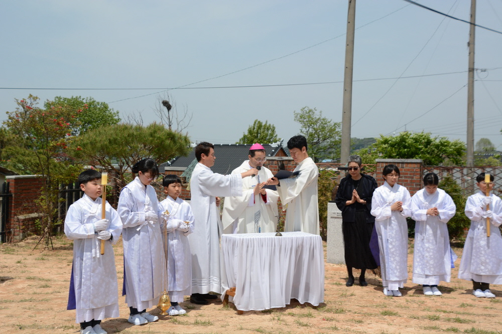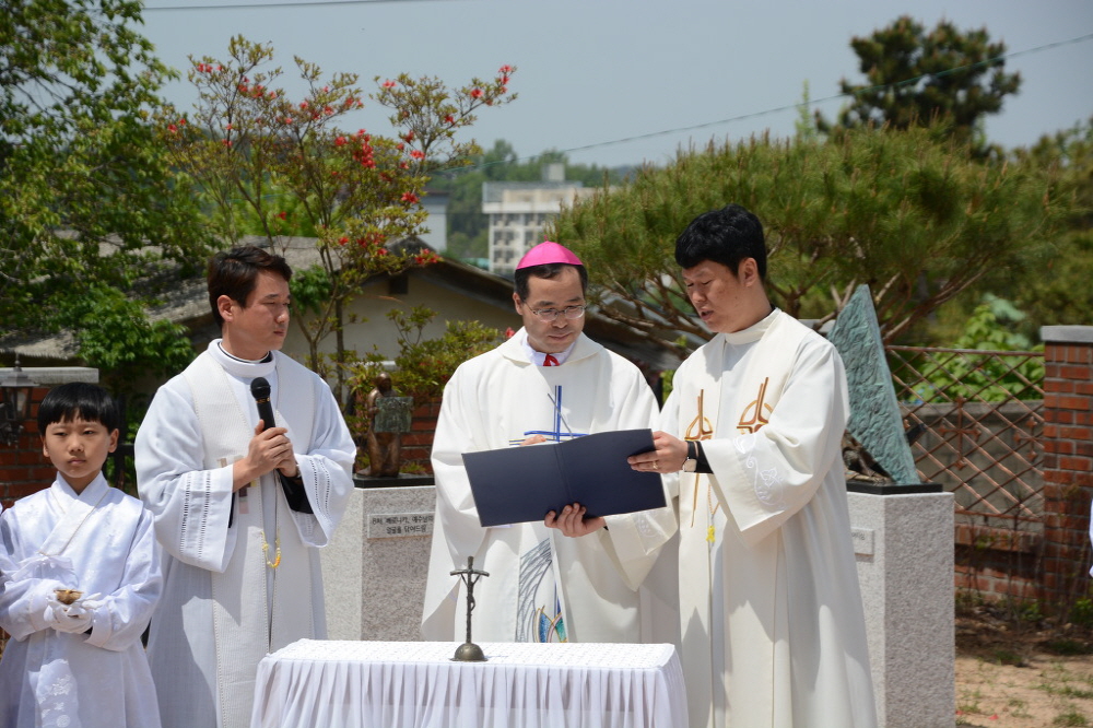 김 주교는 “신앙을 잃게 될 위기에 처했을 때, 상상하지 못한 방법으로 위기를 극복하고 그런 위기를 통해 더 좋은 상황을 만날 때마다 고향 여산의 순교자들과 성모님의 도움을 확신했다.”며 감사를 표한 뒤, 이 성지를 놀랍게 변화시킨 박 신부의 공로를 치하했다. 또 “순교자들은 우리에게 그리스도의 삶을 최우선으로 여기도록 가르쳐 준다. 그런데 종종 우리는 세상의 것을 더 우선 하곤 한다. 이런 도전을 물리친 순교자들은 박해와 죽임을 당했지만 하늘의 문을 통해 영원한 생명에 들어갔다. 따라서, 우리도 순교자들의 삶을 결심하고 실천하도록 하자.”라고 당부했다.