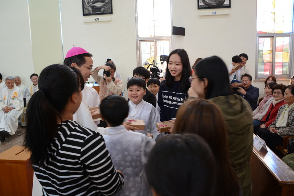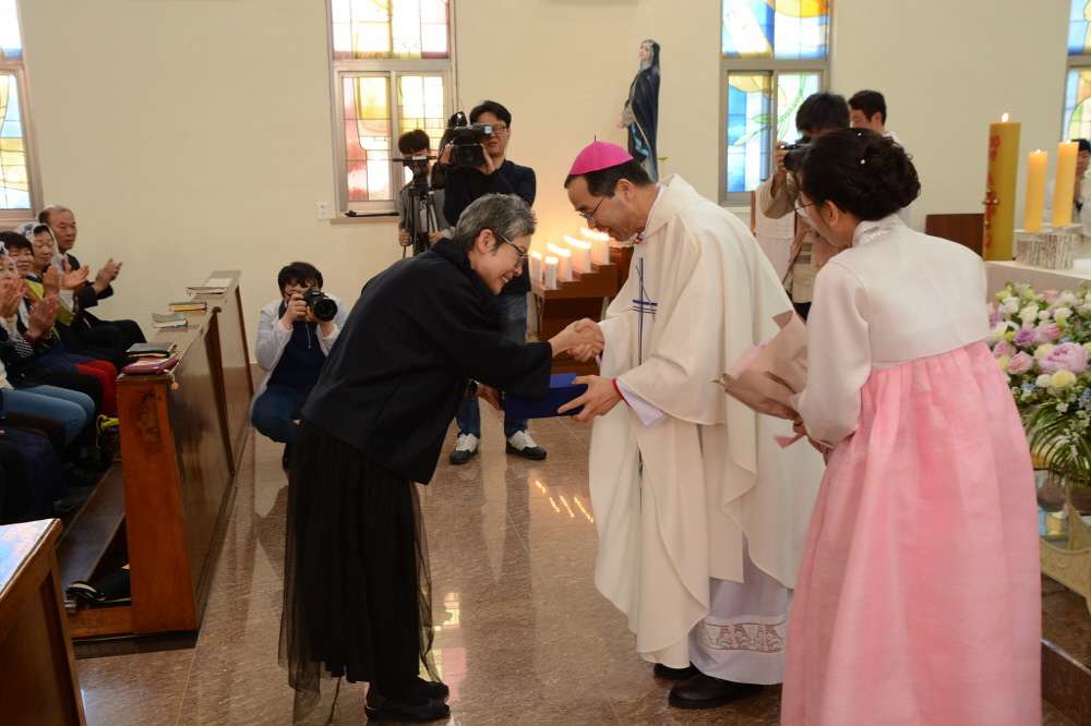 박상운 신부는 기도하는 성지가 되도록 찾아 준 순례자, 성지 조성과 14처, 하늘의 문 제작, 성당 리모델링에 이르기까지 함께 한 여러 봉헌자들에게 열과 성을 다하여 정말 장한 일을 해낸 본당 교우들에게 감사인사를 전했다. 특별히 14처 청동 조상, 십자고상, 성전 14처 묵화 작품을 봉헌한 정미연 작가에게는 교구장의 감사패가 수여되었다.